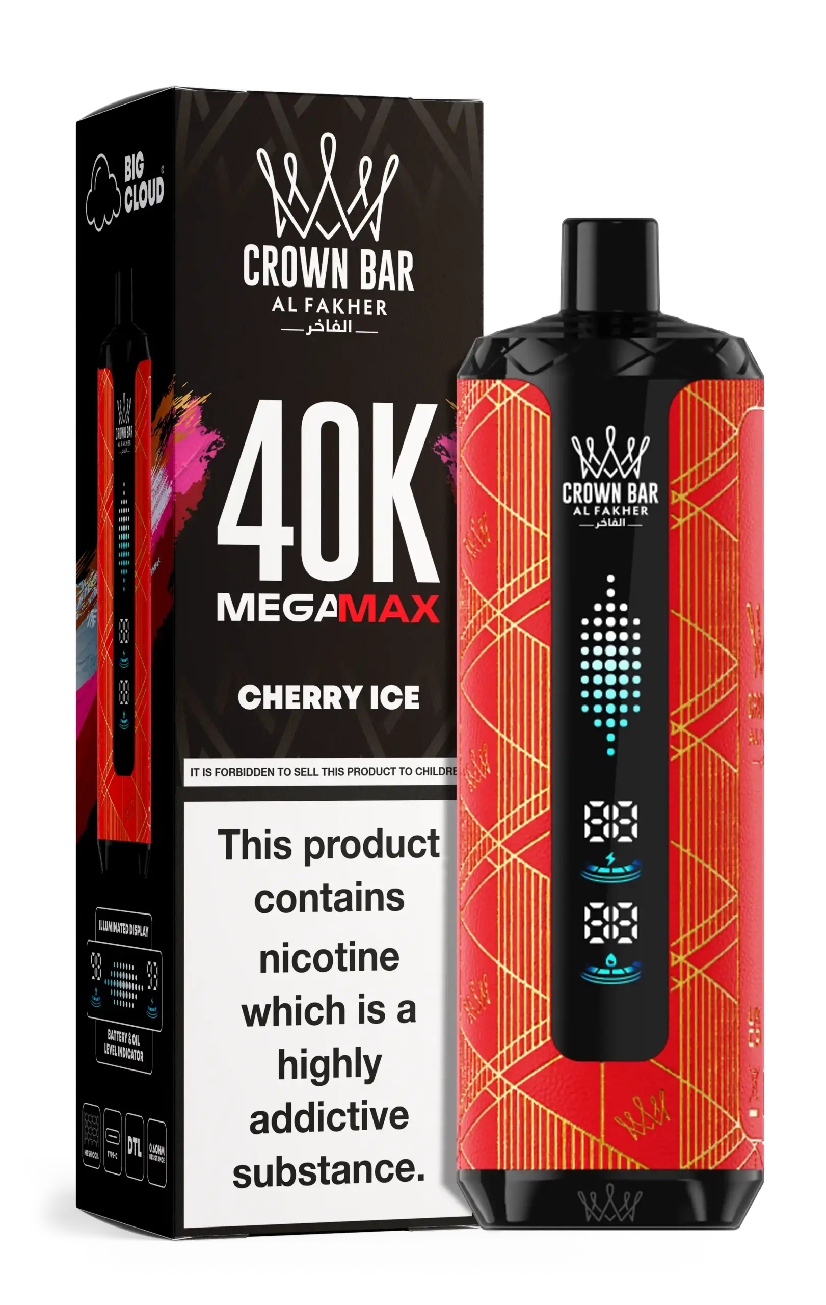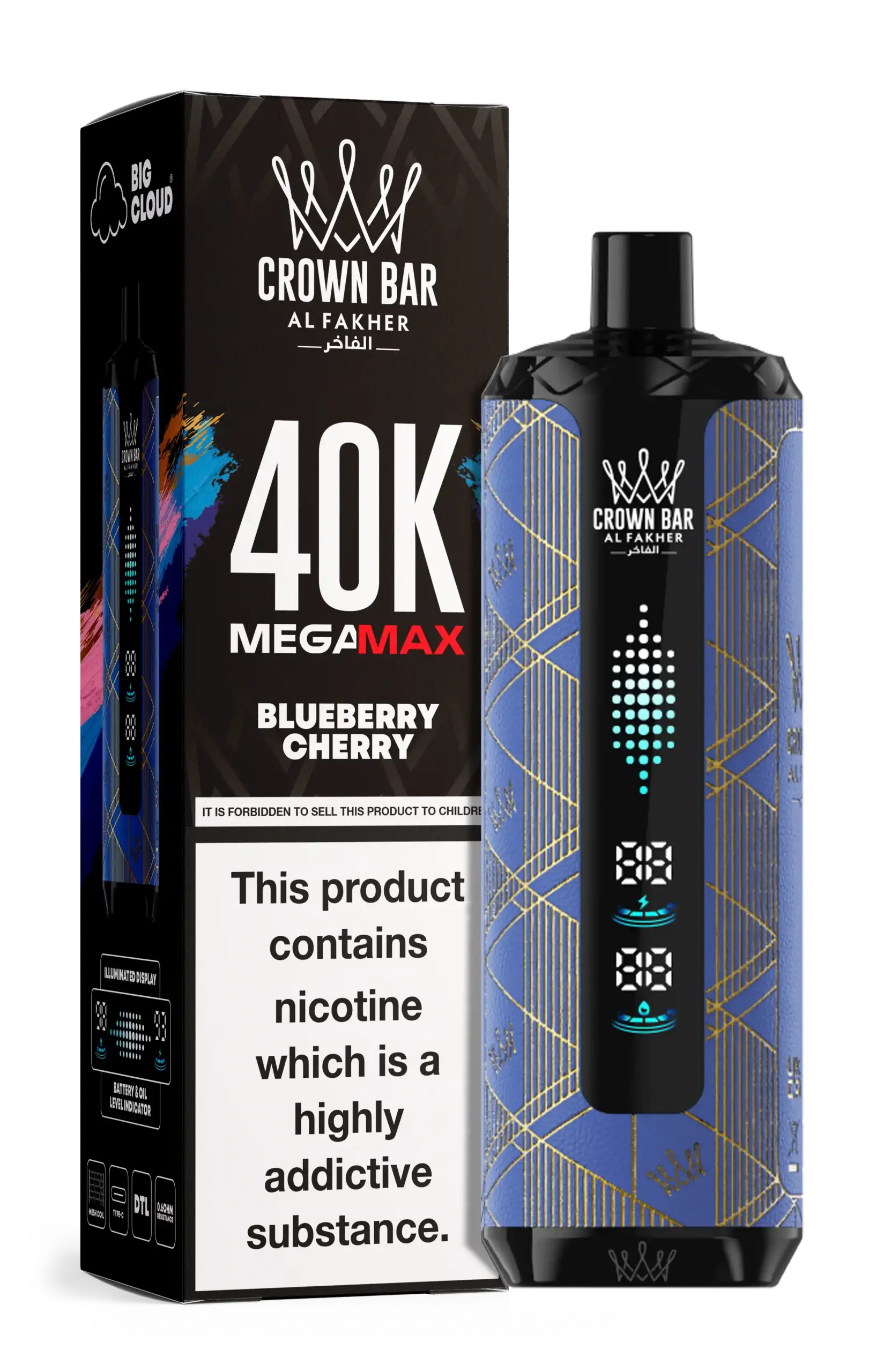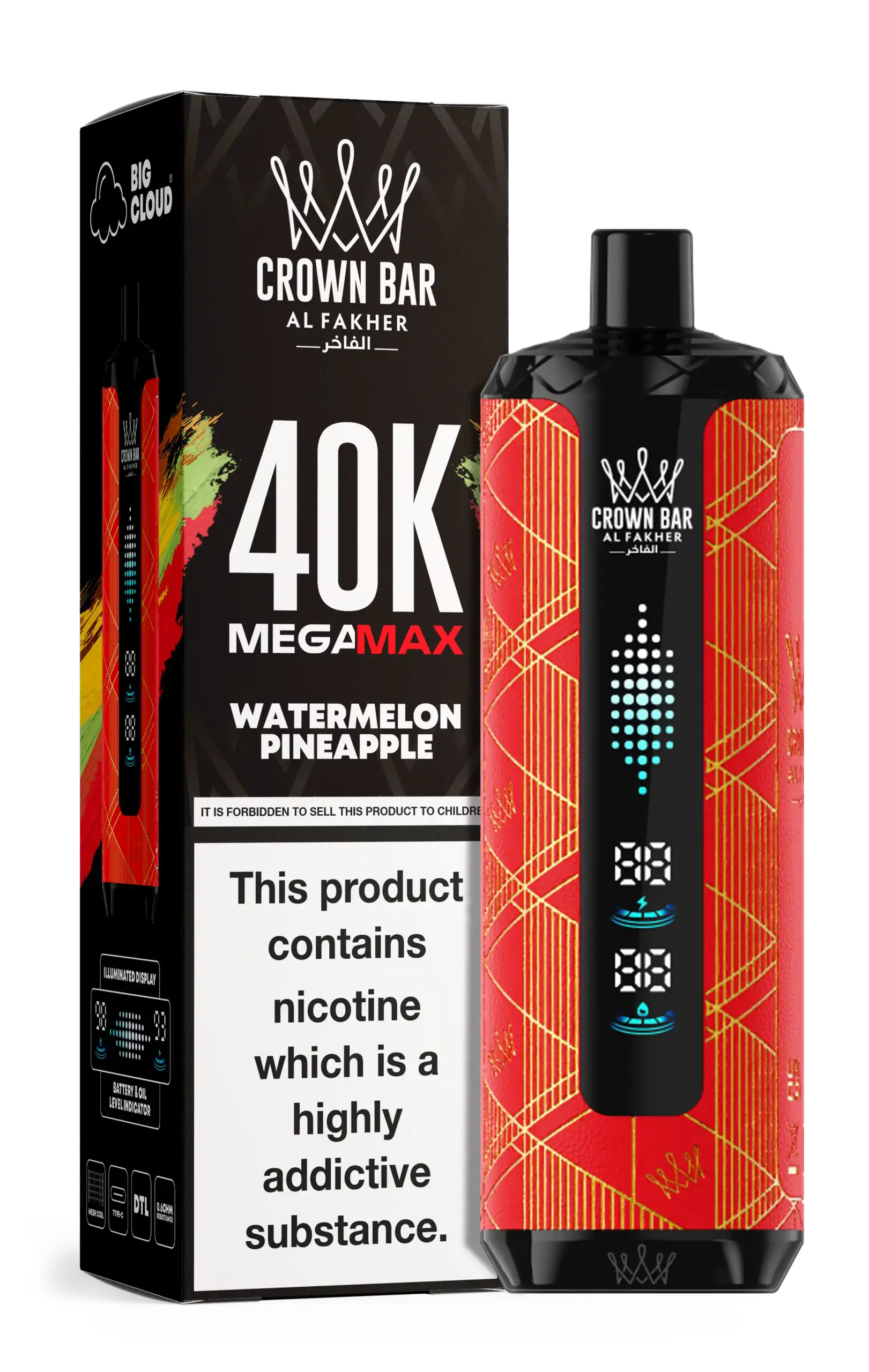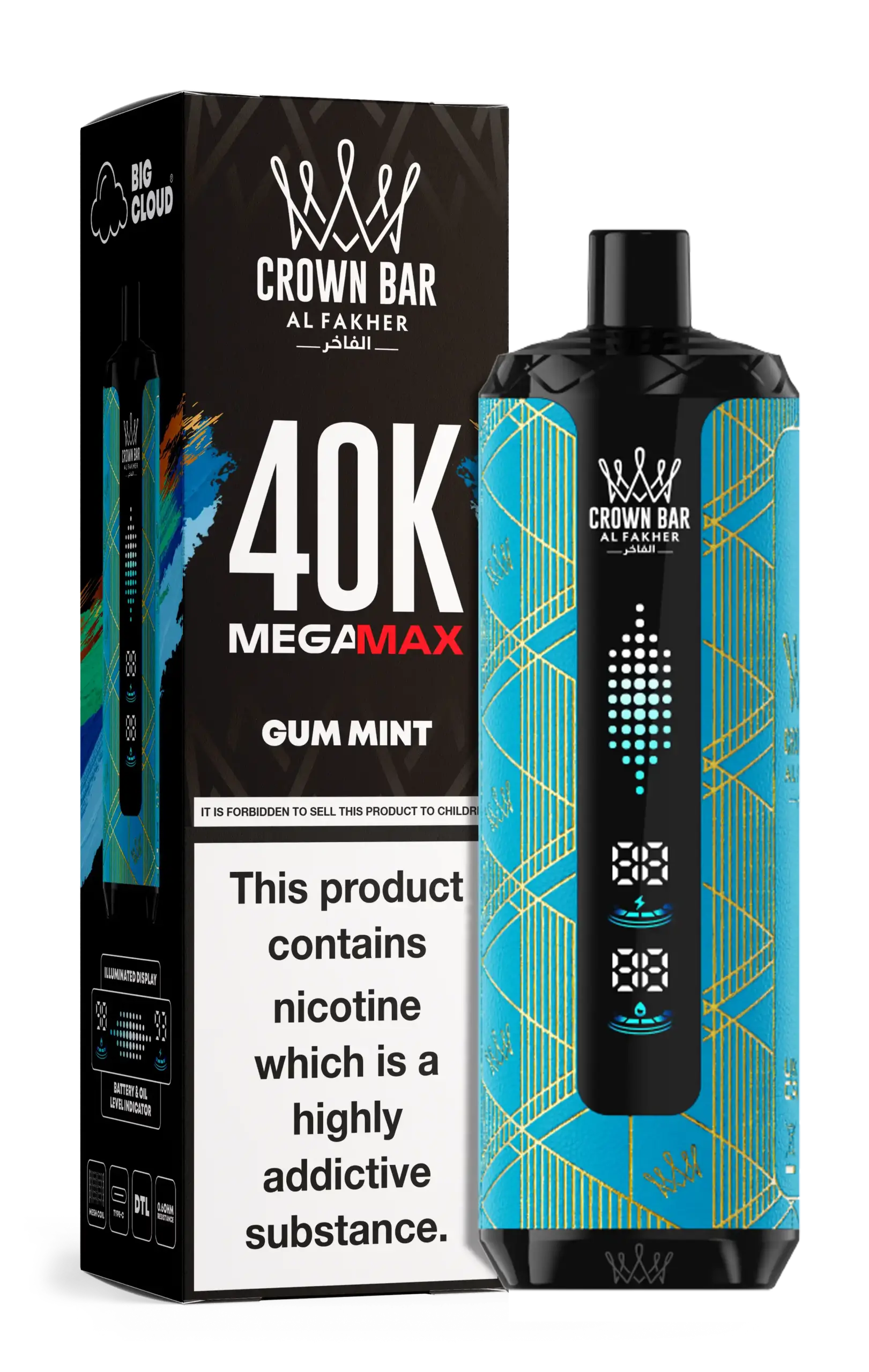 The Al Fakher Crown Bar Mega Max 40000 is built for users who want a higher-capacity disposable with a bold visual style and a broad flavour range to choose from. With up to 40000 puffs, 30ml capacity, and a 950mAh battery, it sits in the longer-use category for users who prefer fewer replacements and a more substantial everyday device. The black-and-red finish shown in the latest image also gives it a more distinctive shelf presence than a plain single-colour design.