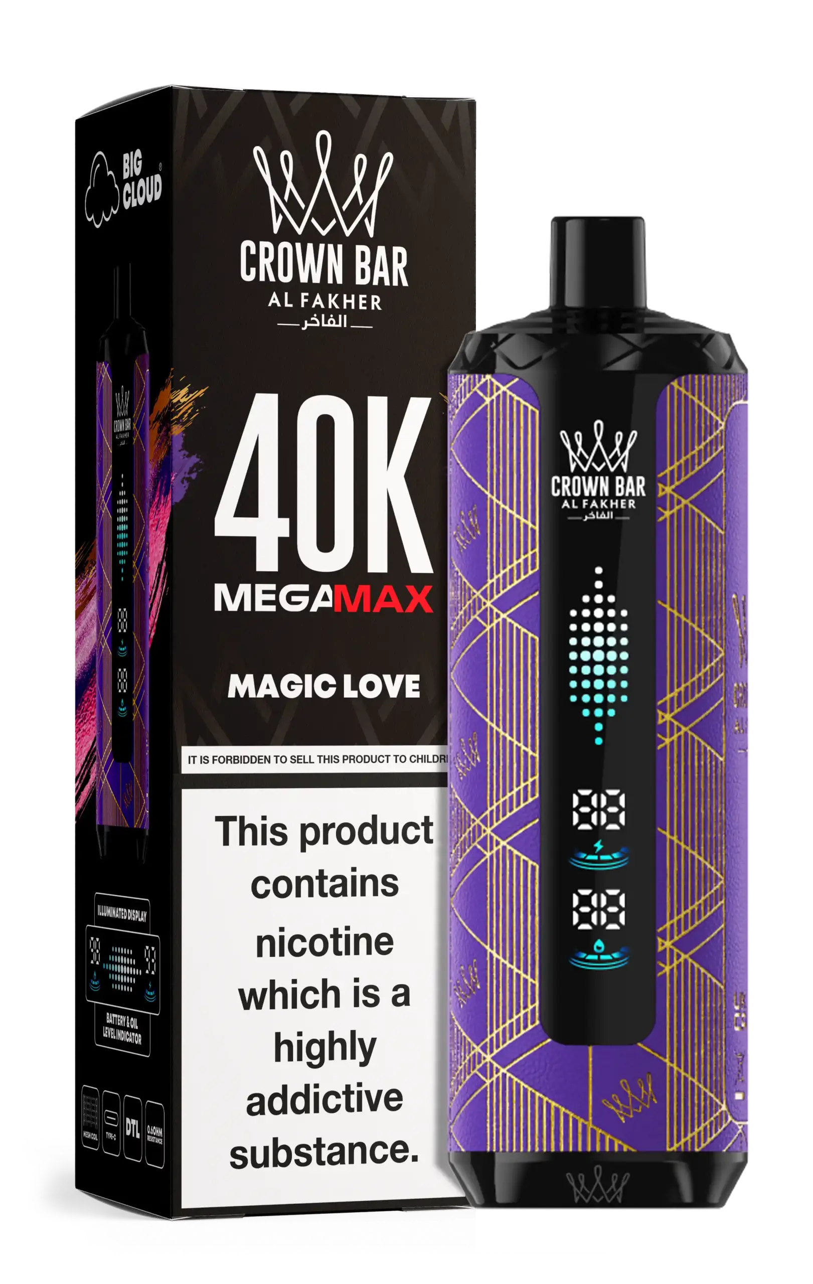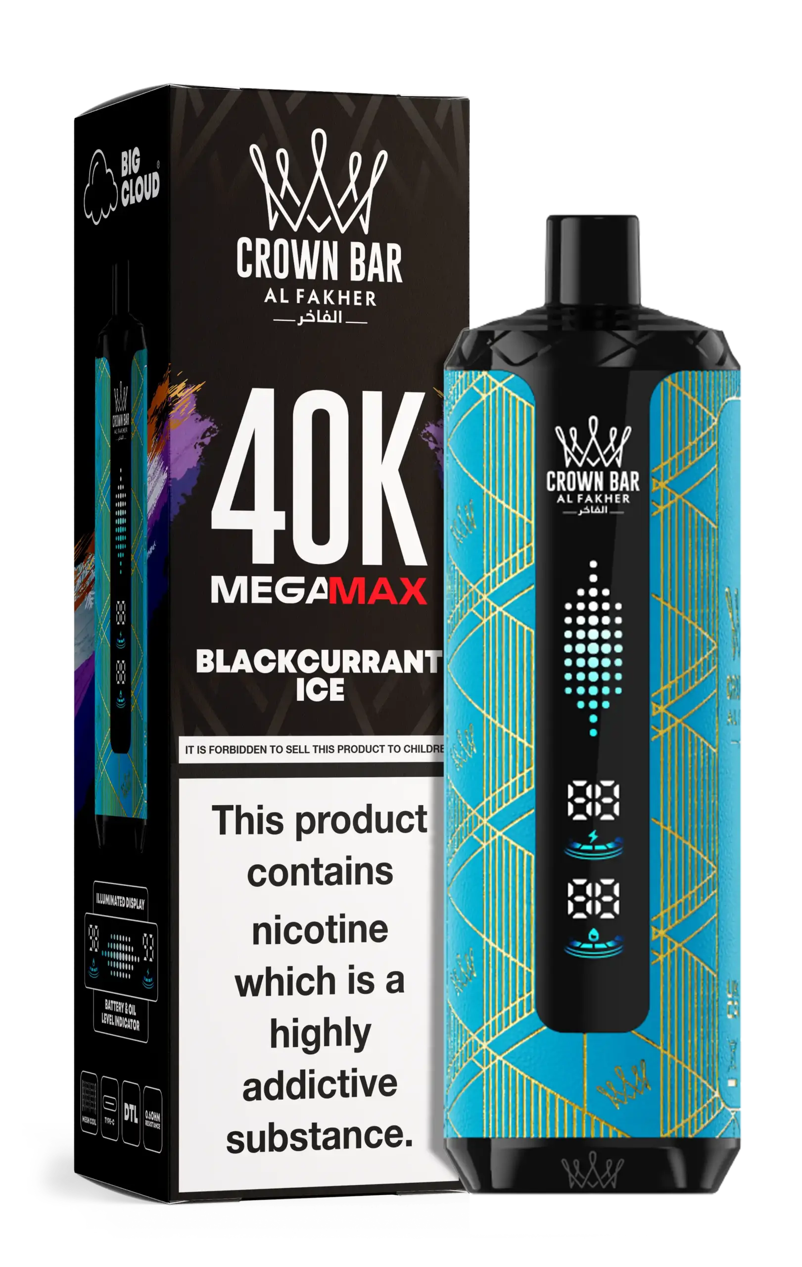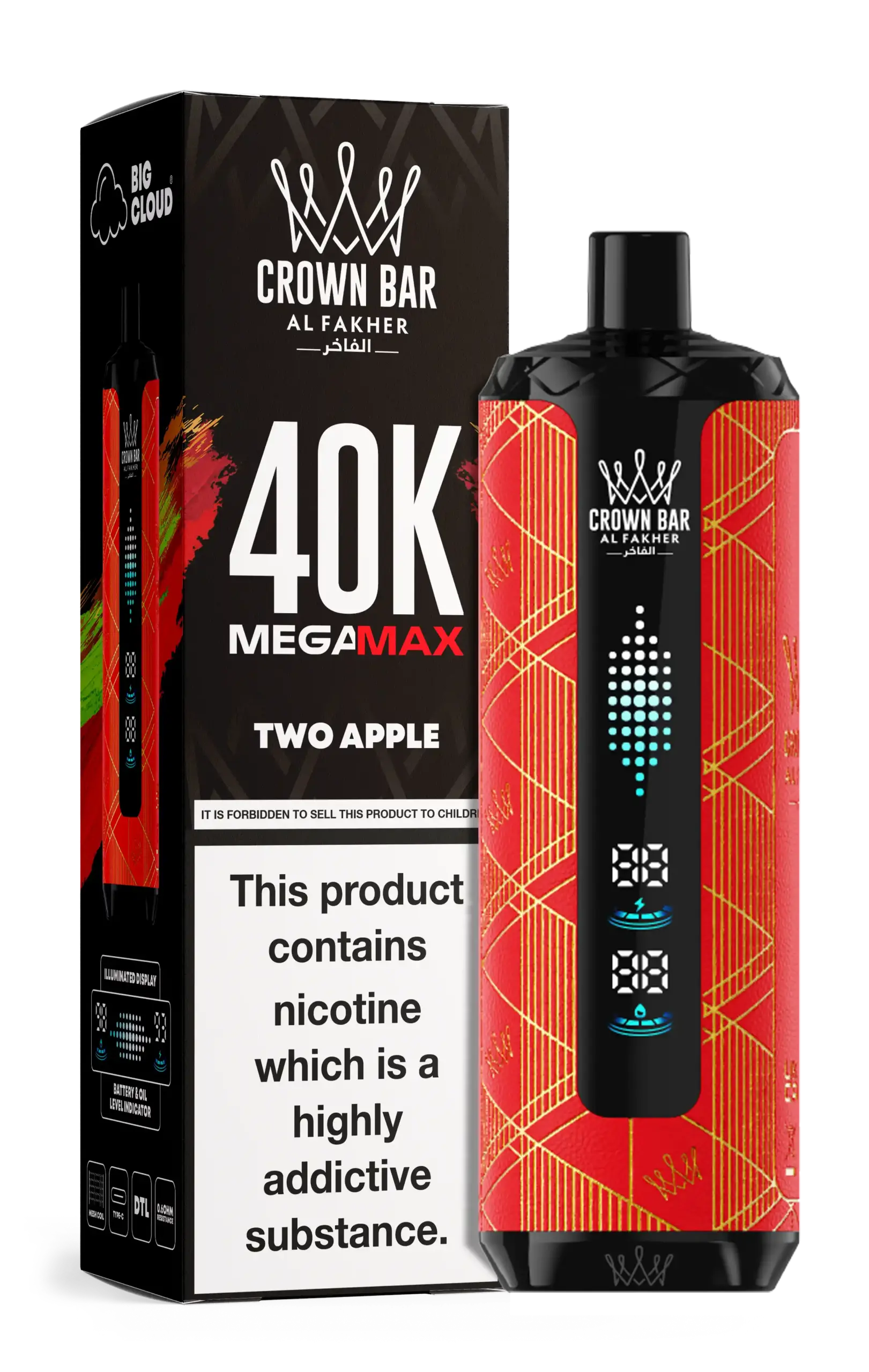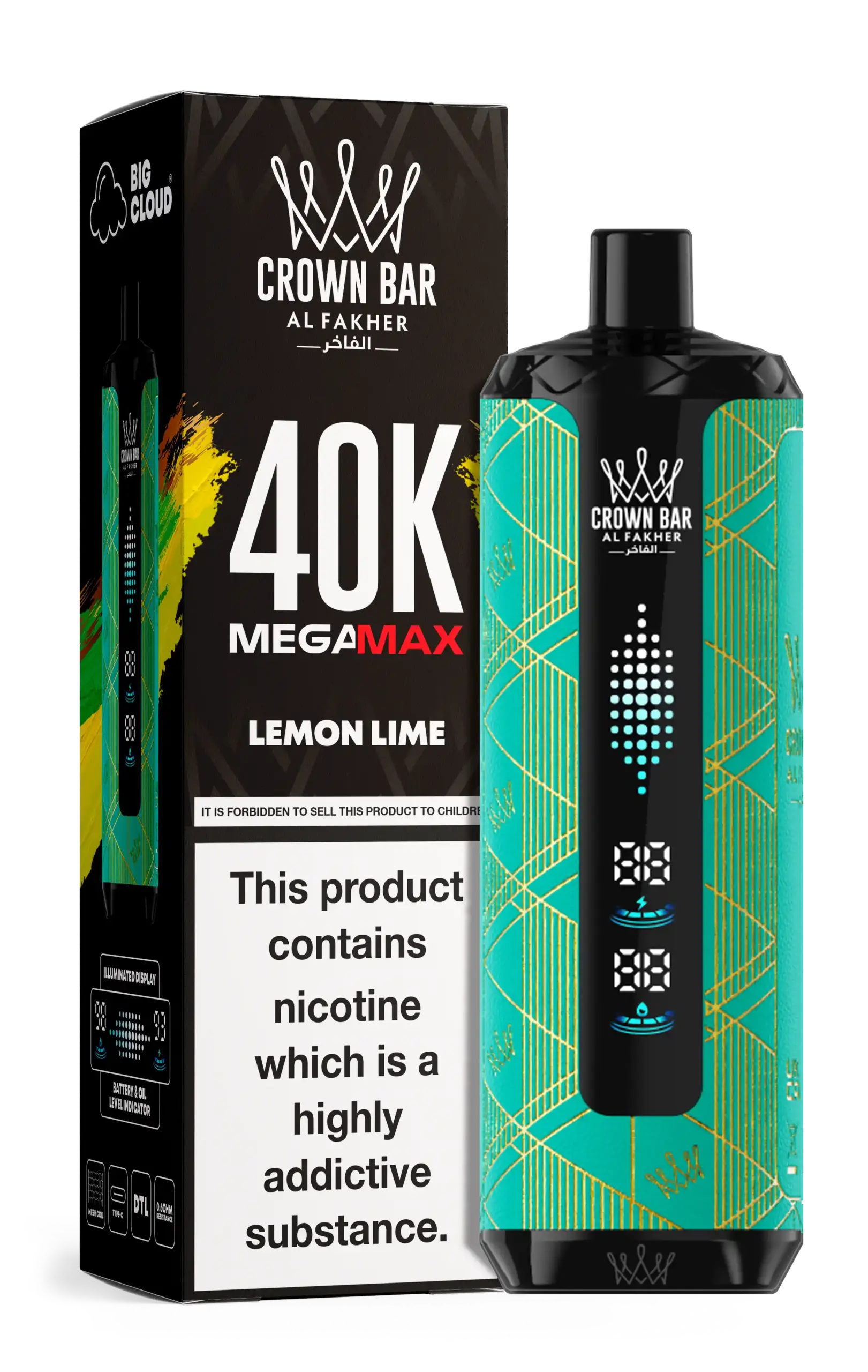 The Al Fakher Crown Bar Mega Max 40000 is built for users who want a higher-capacity disposable with a bold visual style and a broad flavour range to choose from. With up to 40000 puffs, 30ml capacity, and a 950mAh battery, it sits in the longer-use category for users who prefer fewer replacements and a more substantial everyday device. The black-and-red finish shown in the latest image also gives it a more distinctive shelf presence than a plain single-colour design.
