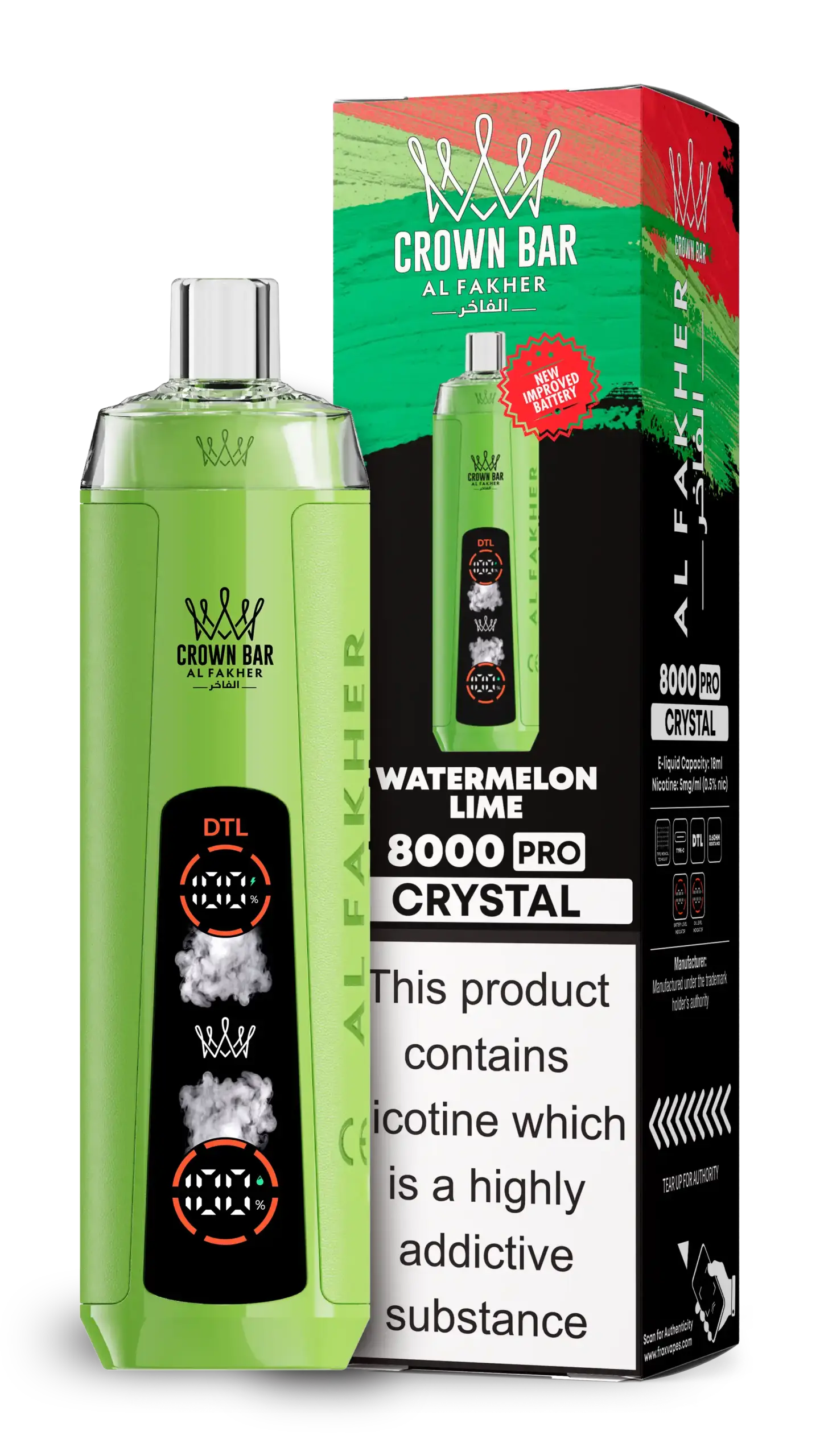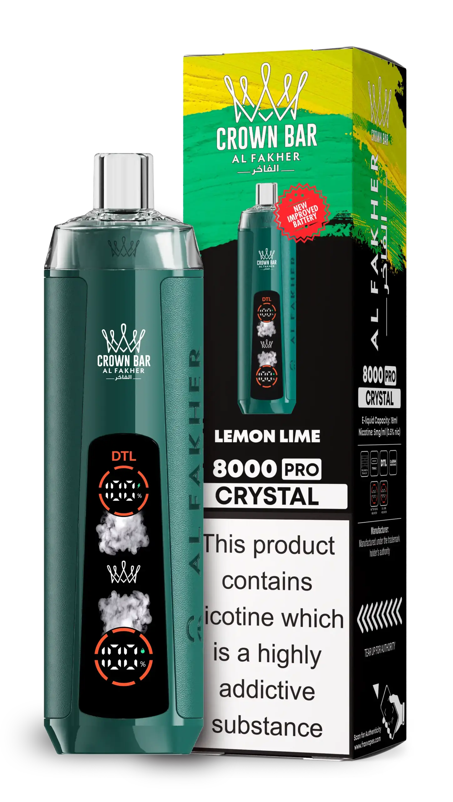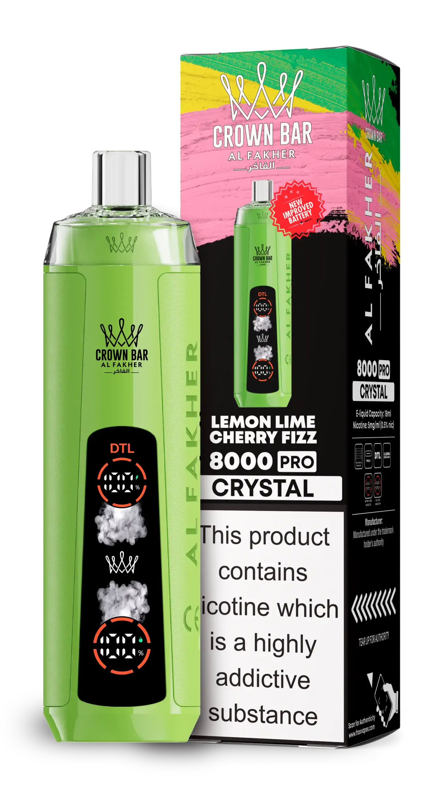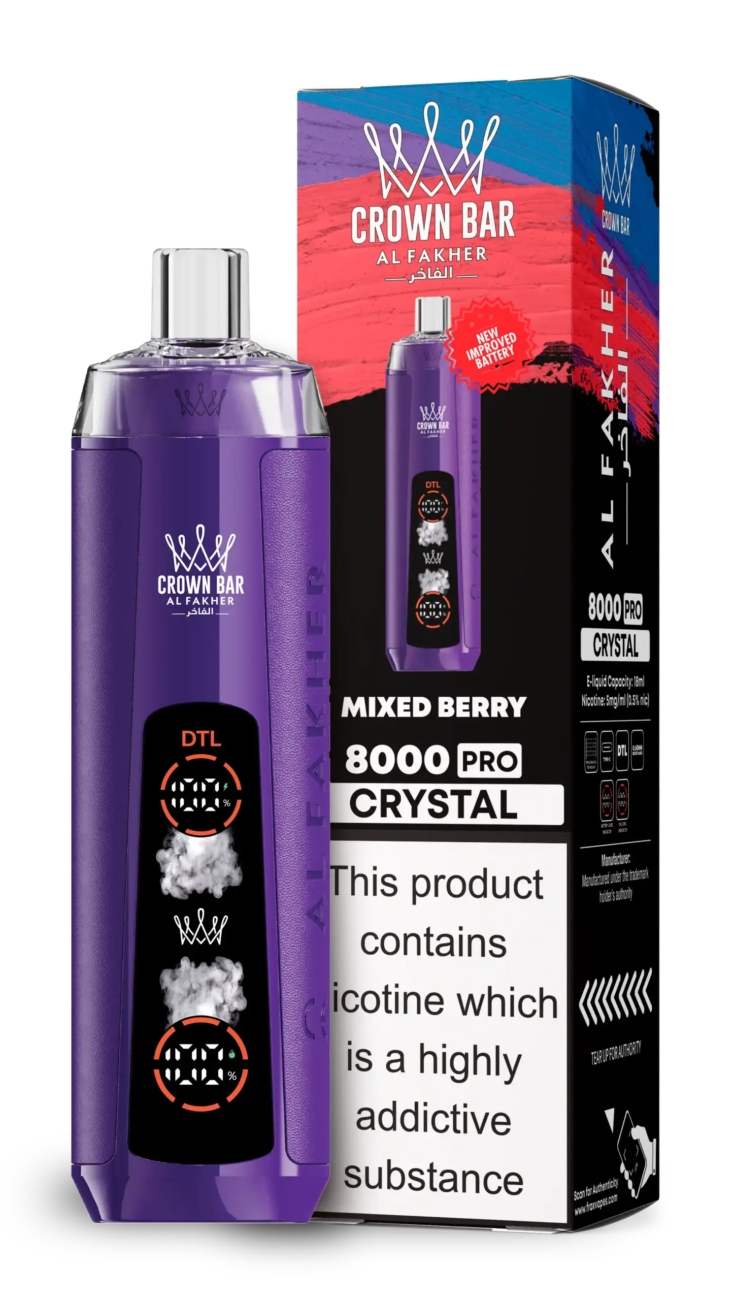The Al Fakher Crystal 8000 is a compact higher-capacity disposable for users who want a more refined daily-use format without moving into an oversized device. Built around the 8000-puff class, with 18ml capacity, a 1200mAh battery, and a broad 45-flavour lineup, it balances practical everyday use with a cleaner crystal-style look. The latest image also gives it a stronger shelf presence, with a leather-like outer finish, clear upper section, and a front screen layout that makes the design feel more polished than a plain basic disposable.