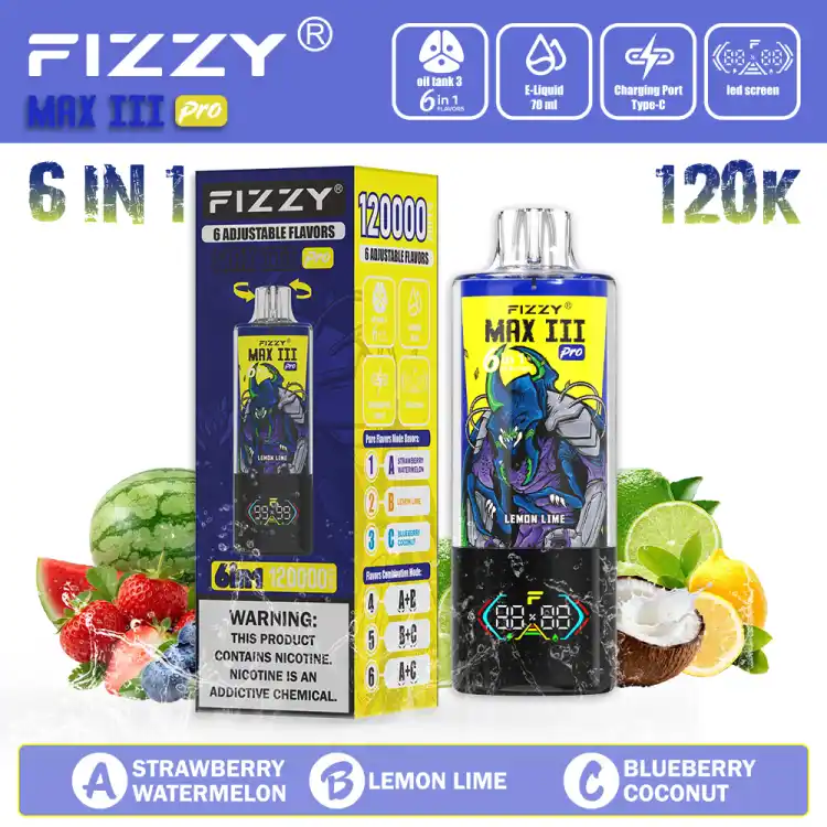 FIZZY Max III PRO 120000 Puffs Vape 6-in-1 LED